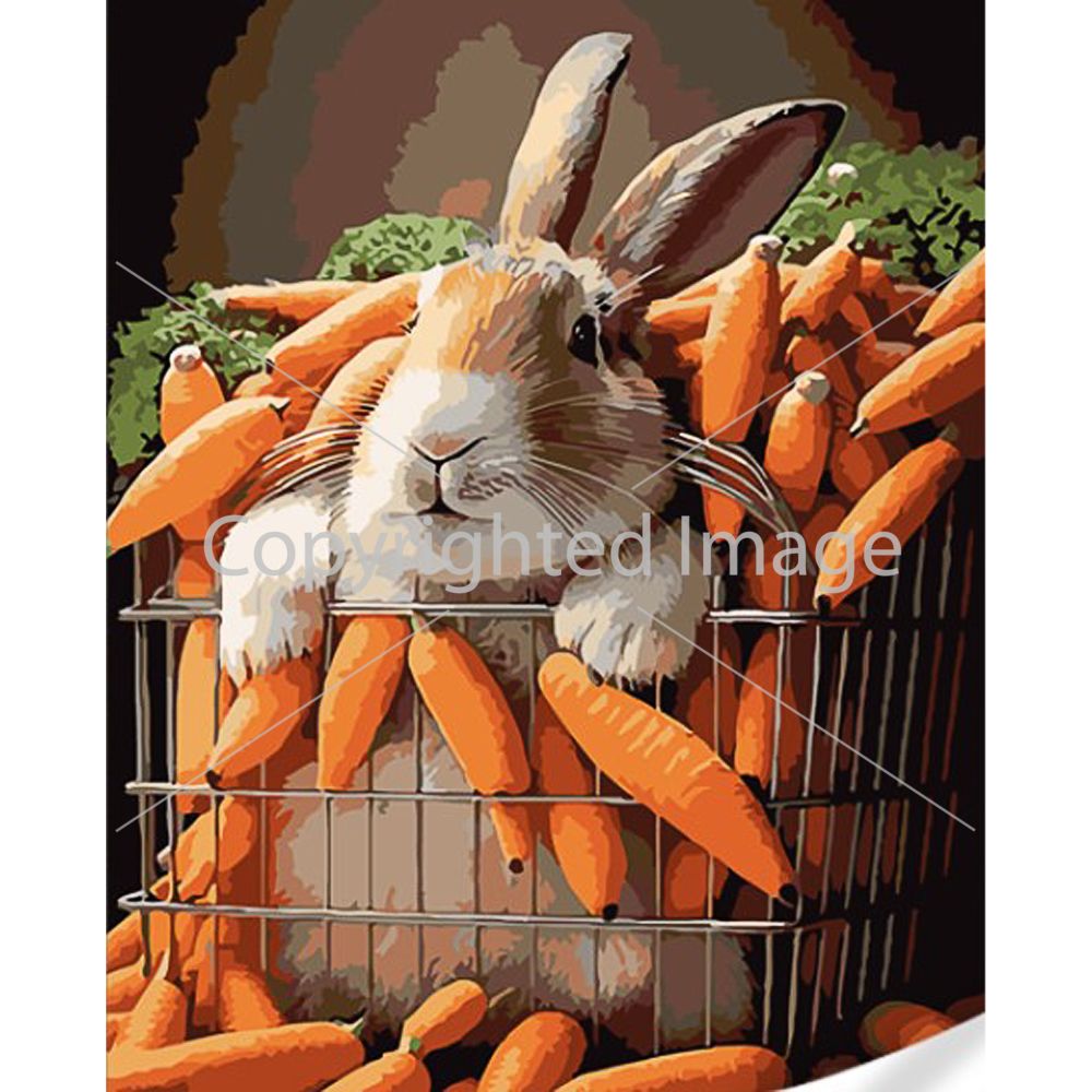 Картина за номерами Strateg ПРЕМІУМ Кролик у моркві з лаком та з рівнем розміром 40х50 (GS1627)