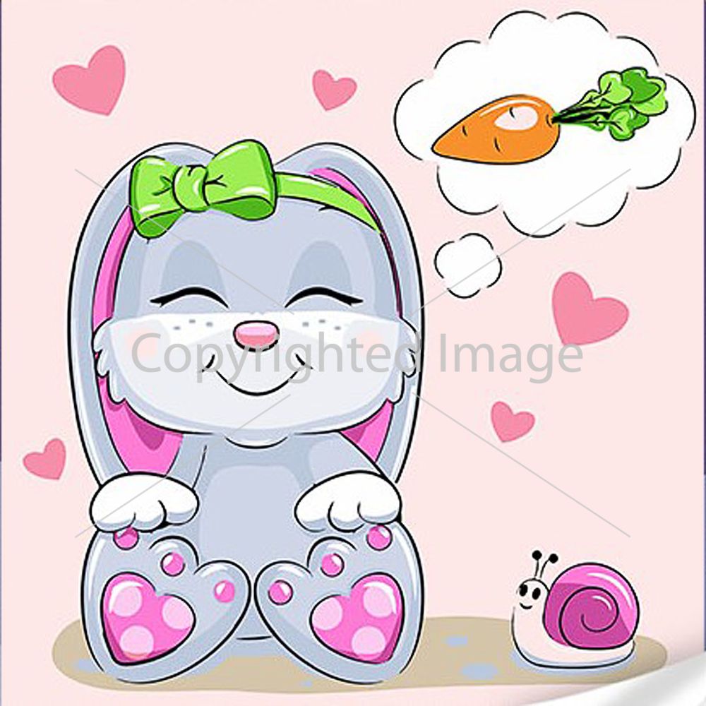 Картина за номерами Strateg ПРЕМІУМ Кролик з морквою з лаком та з рівнем розміром 30х30 см (ES-0876)