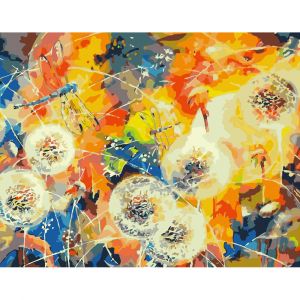 Картина за номерами Strateg ПРЕМІУМ Кульбаби в абстракції розміром 40х50 см (GS330)