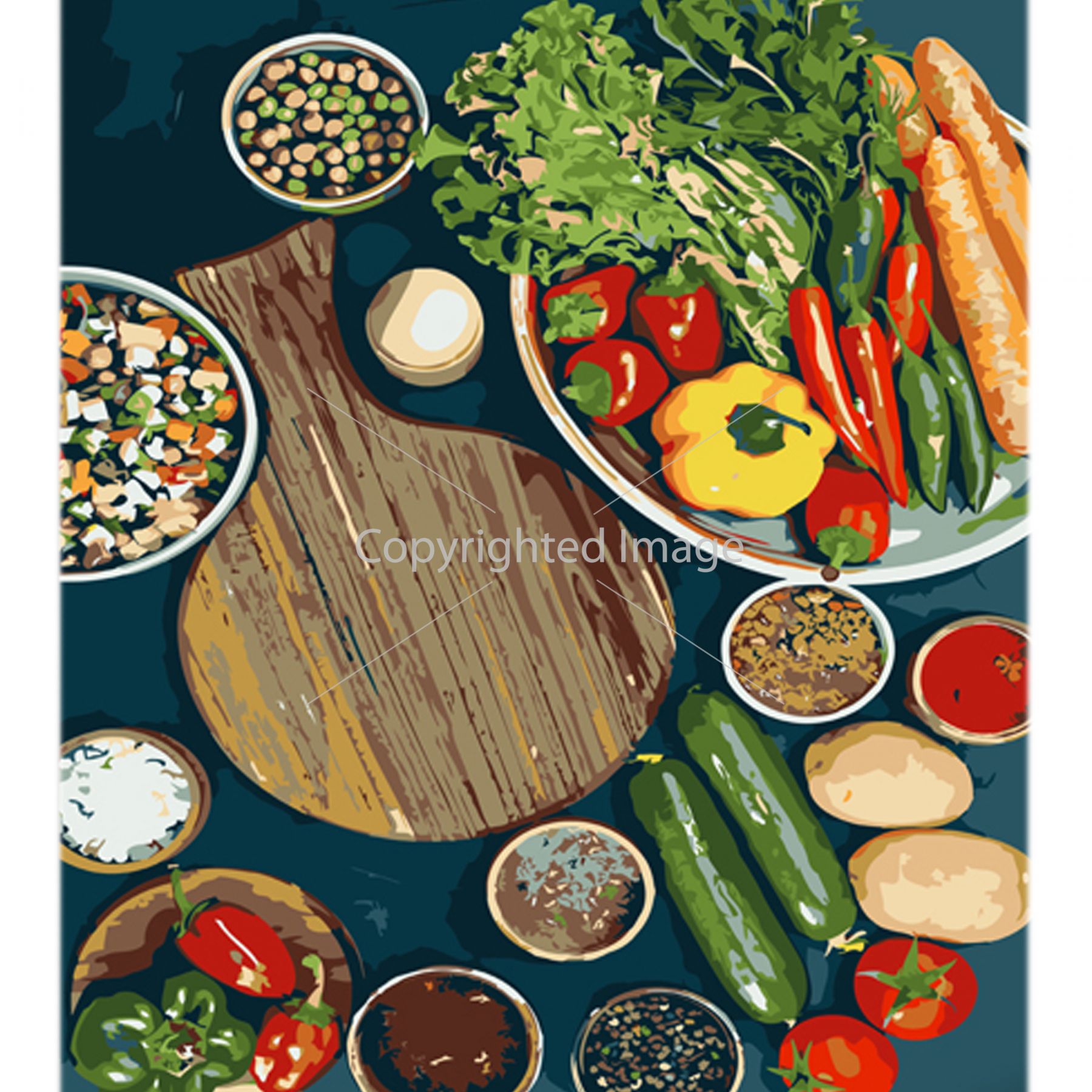 Картина за номерами Strateg ПРЕМІУМ Кулінарна фантазія з лаком та з рівнем розміром 30х40 см (LY69)