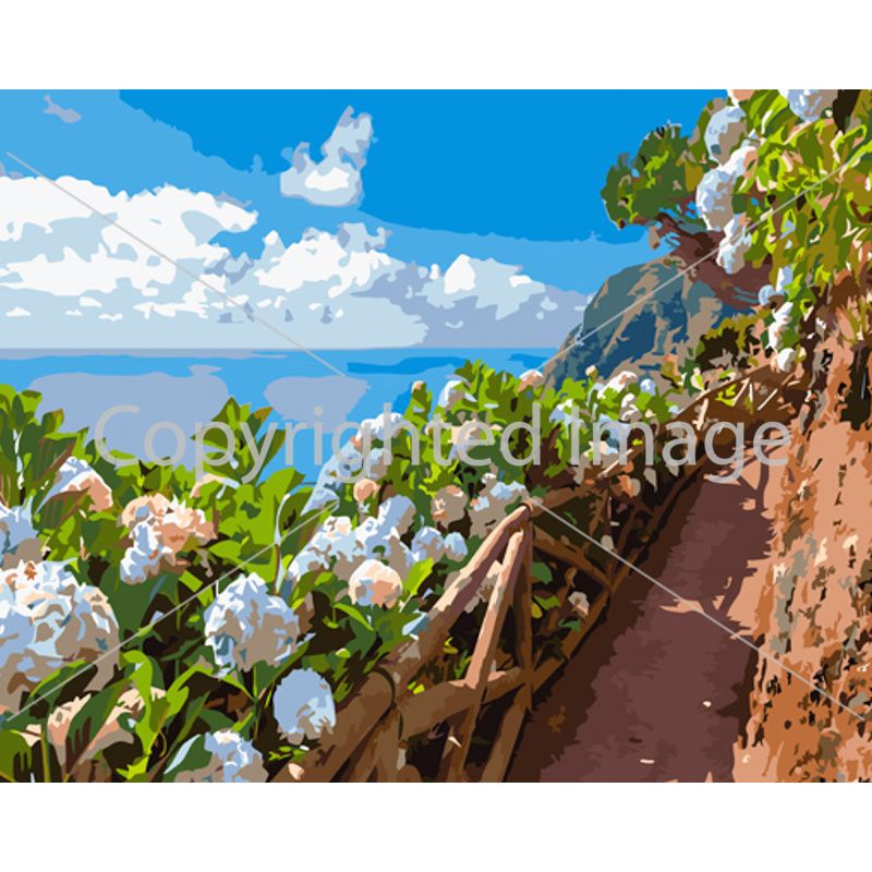 Картина за номерами Strateg ПРЕМІУМ Квіти біля стежки розміром 40х50 см (GS1011)