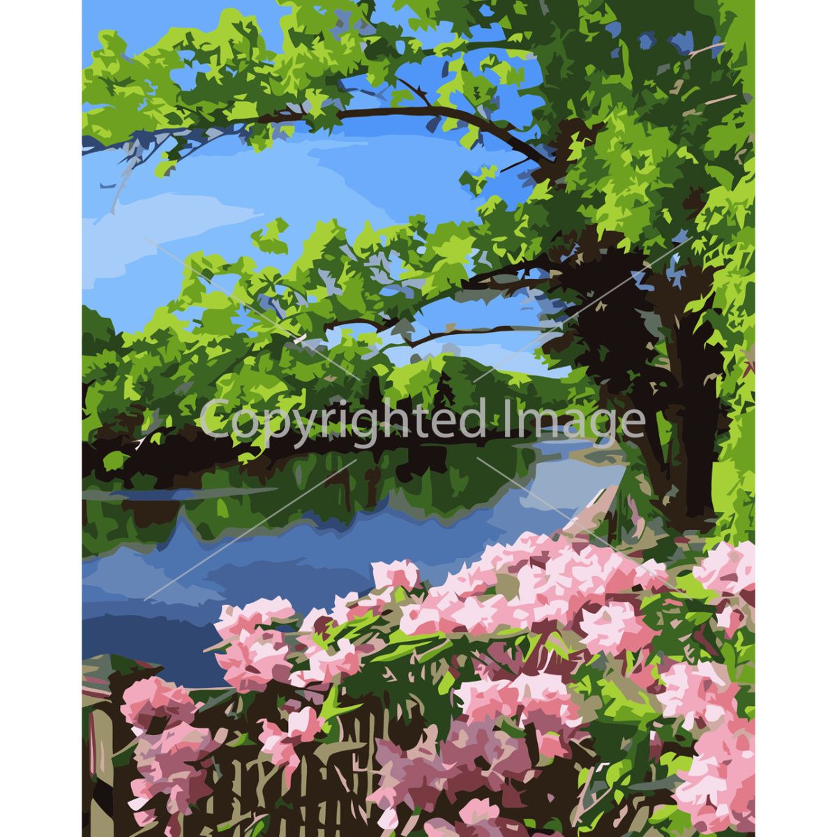 Картина за номерами Strateg ПРЕМІУМ Квіти біля води з лаком розміром 40х50 см VA-3693