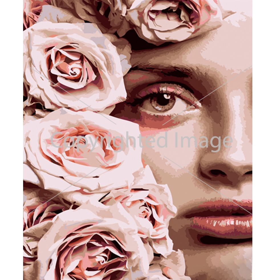 Картина за номерами Strateg ПРЕМІУМ Квіти на обличчі розміром 40х50 см (HH050)