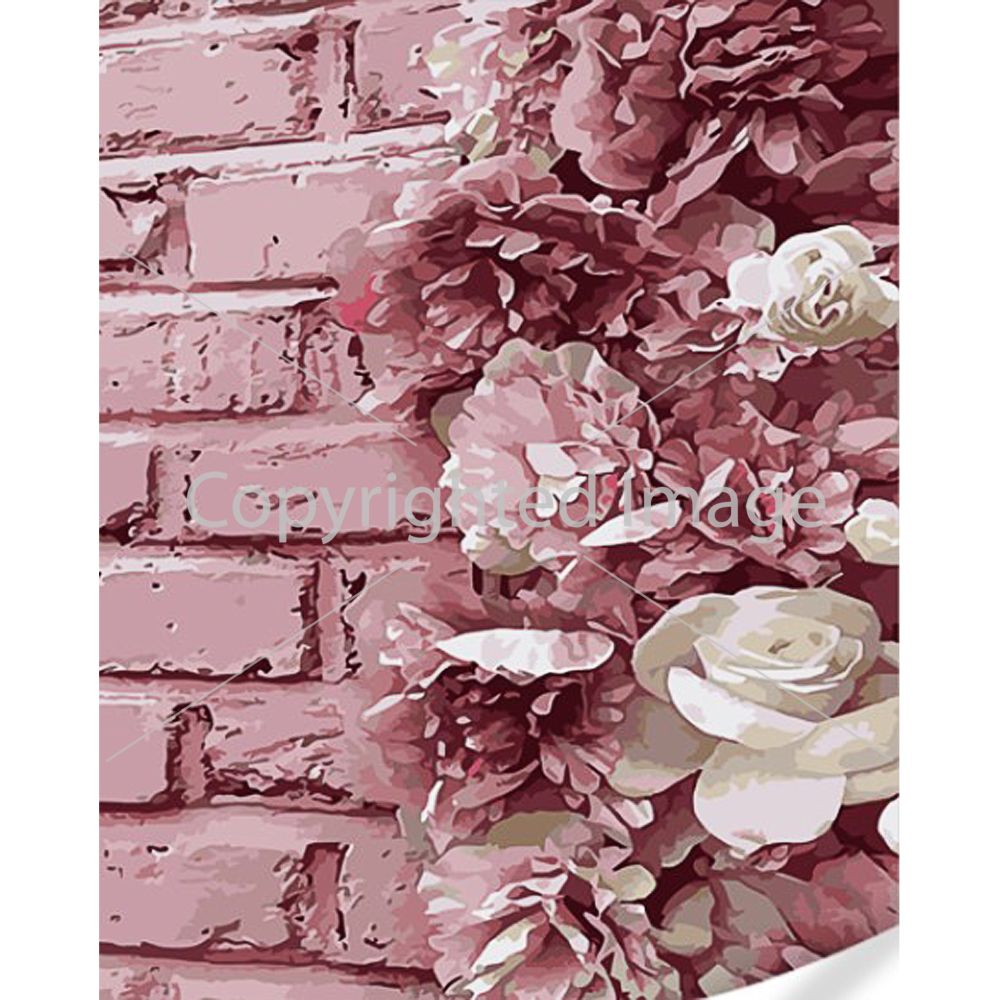 Картина за номерами Strateg ПРЕМІУМ Квіти на стіні з лаком та з рівнем розміром 40х50 (GS1626)