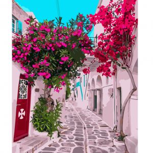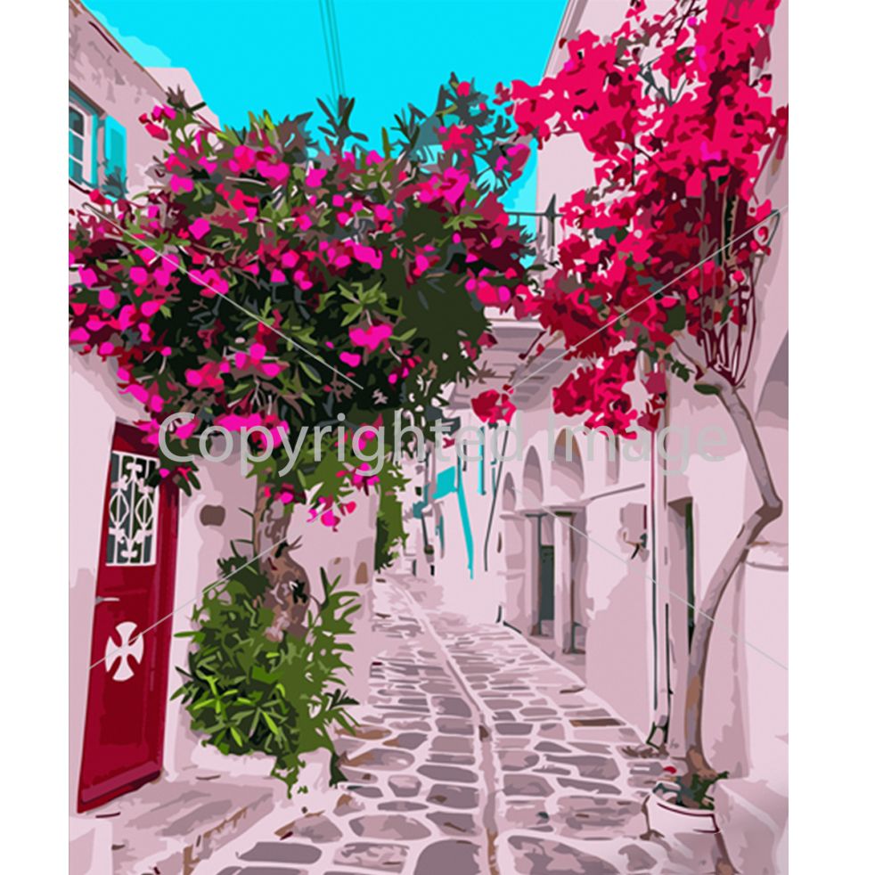 Картина за номерами Strateg ПРЕМІУМ Квіткові вулиці Санторіні розміром 40х50 см (HH076)