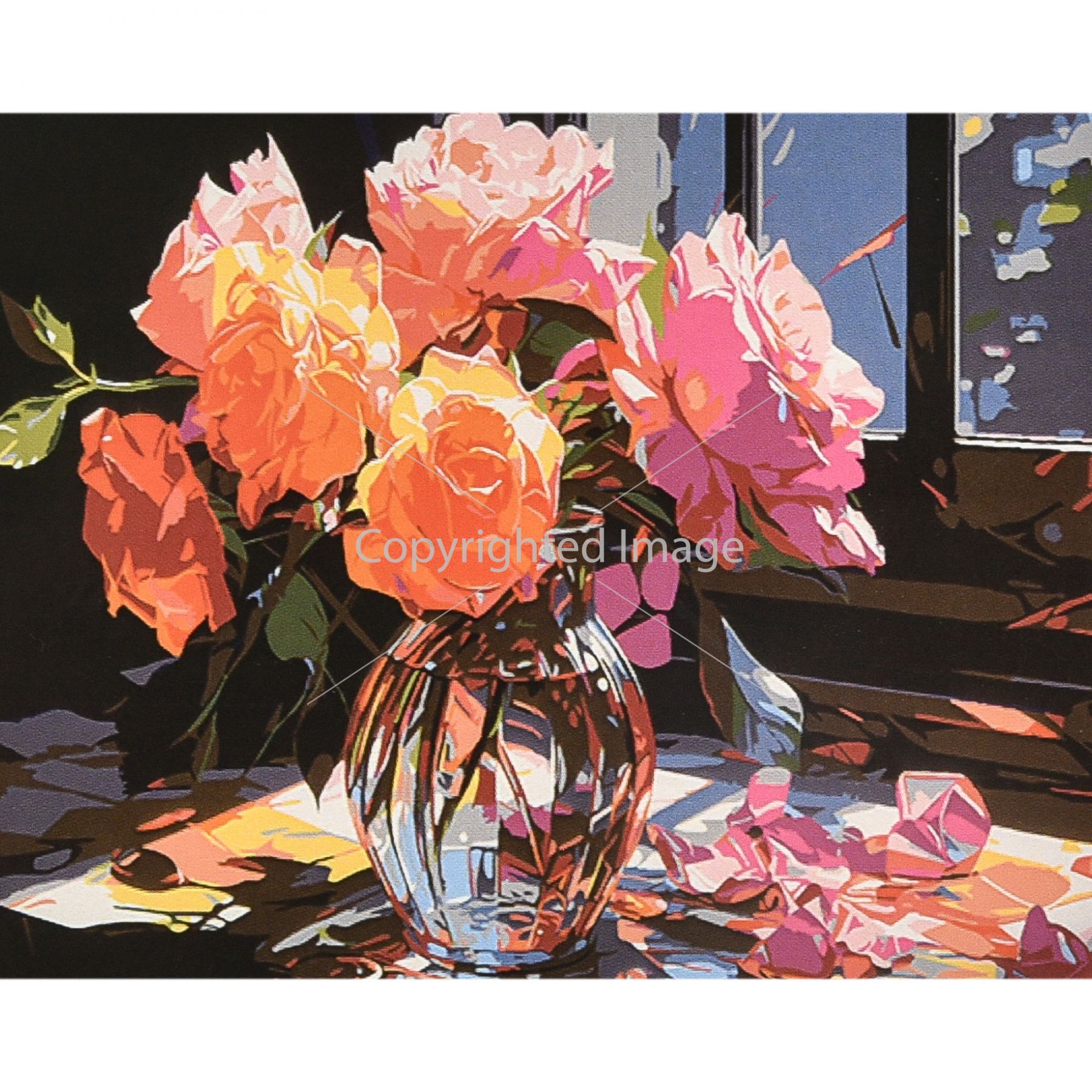 Картина за номерами Strateg ПРЕМІУМ Квітковий букет у вазі з лаком та рівнем розміром 40х50 см (VA-4613)