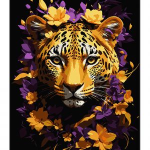 Картина за номерами Strateg ПРЕМІУМ Квітковий образ леопарда на чорному фоні розміром 40х50 см (AH1122)