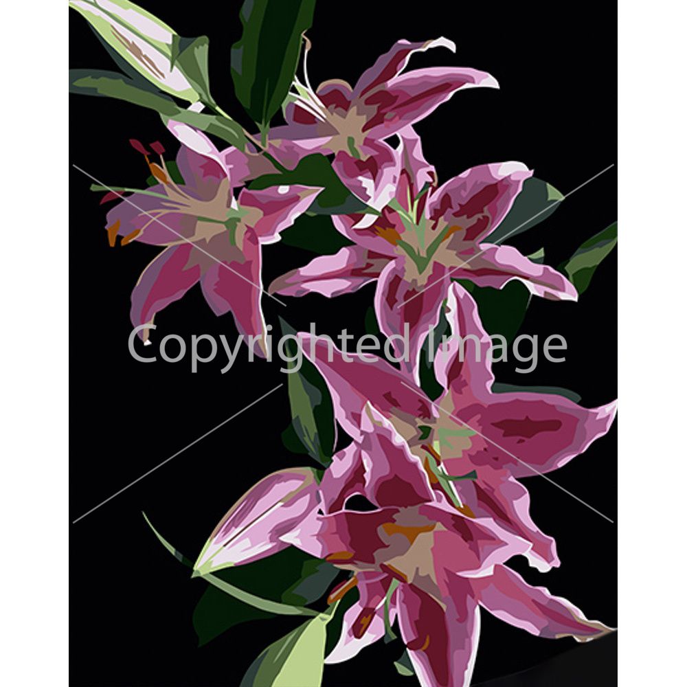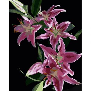 Картина за номерами Strateg ПРЕМІУМ Квітучі лілії на чорному фоні розміром 40х50 см (AH1030)