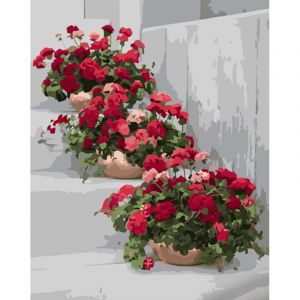Картина за номерами Strateg ПРЕМІУМ Квітучі вазони з лаком розміром 40х50 см (GS1223)