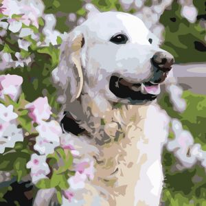 Картина за номерами Strateg ПРЕМІУМ Лабрадор у квітах розміром 40х40 см (SK037)