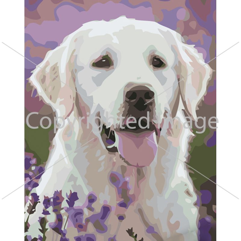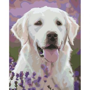 Картина за номерами Strateg ПРЕМІУМ Лабрадор у квітковому полі з лаком розміром 40х50 см (GS1099)