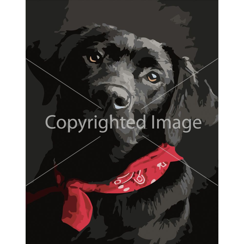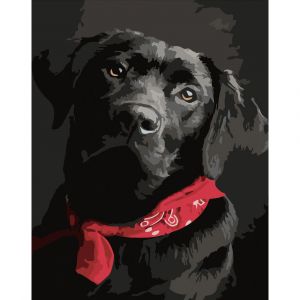Картина за номерами Strateg ПРЕМІУМ Лабрадор з червоною пов'язкою розміром 40х50 см (DY288)