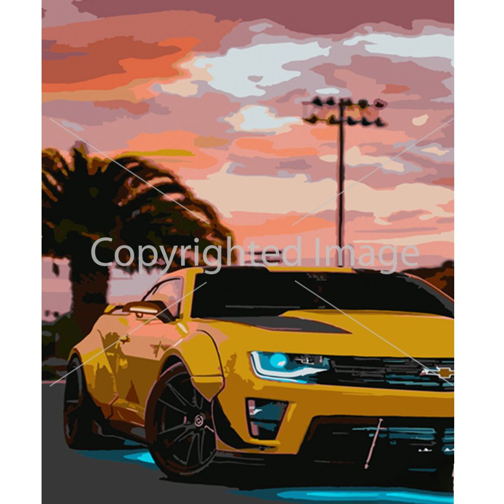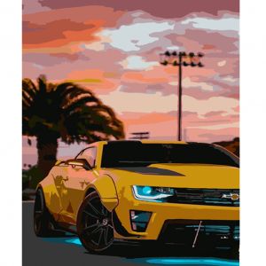 Картина за номерами Strateg ПРЕМІУМ Ламборгіні на заході сонця розміром 40х50 см (HH021)