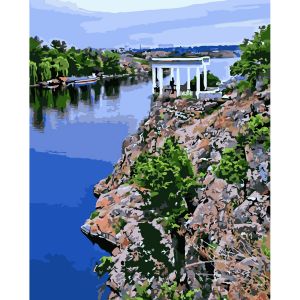 Картина за номерами Strateg ПРЕМІУМ Ластівчине гніздо на Хортиці з лаком розміром 30х40 см (SS-6581)