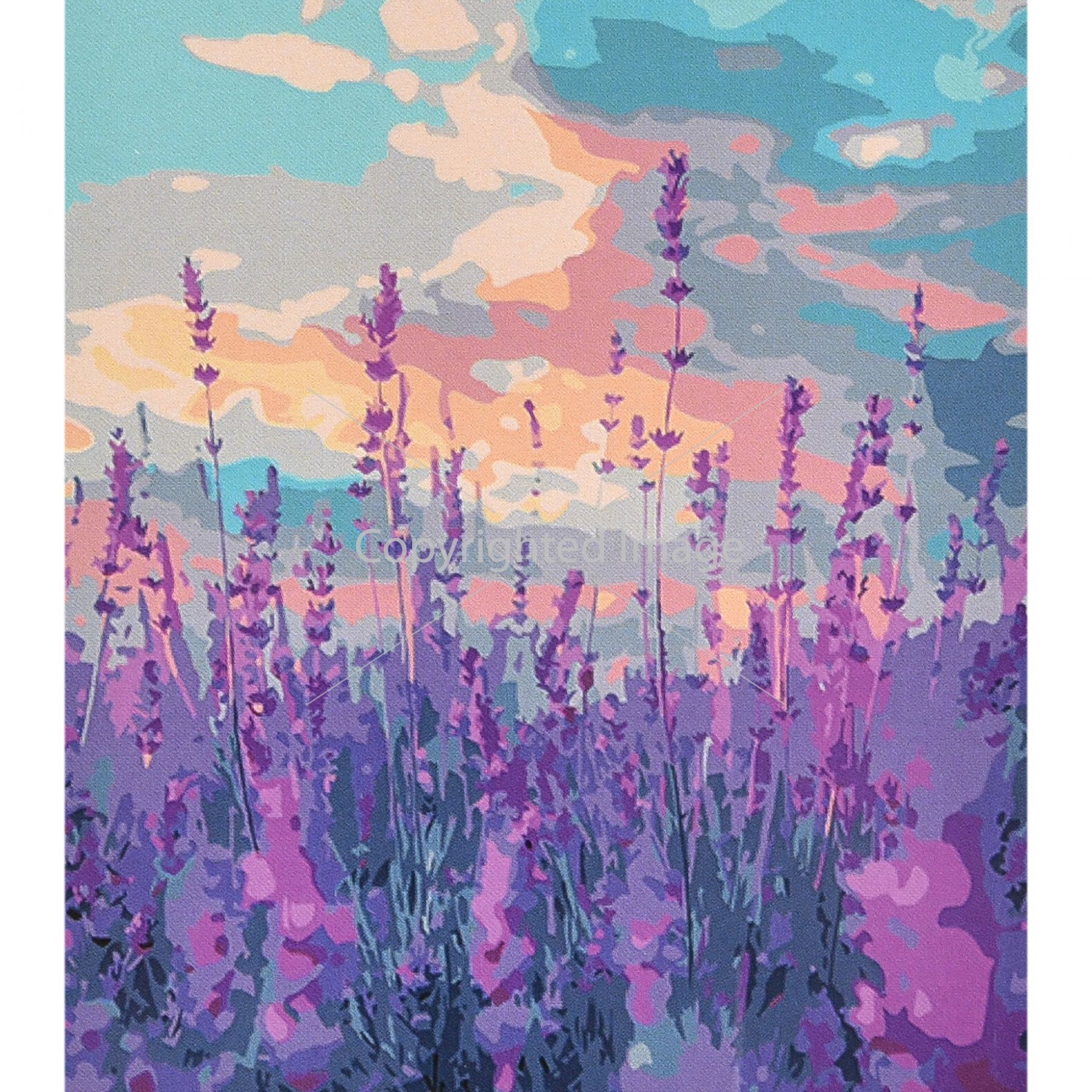 Картина за номерами Strateg ПРЕМІУМ Лавандове небо з лаком та рівнем розміром 40х50 см (VA-4642)