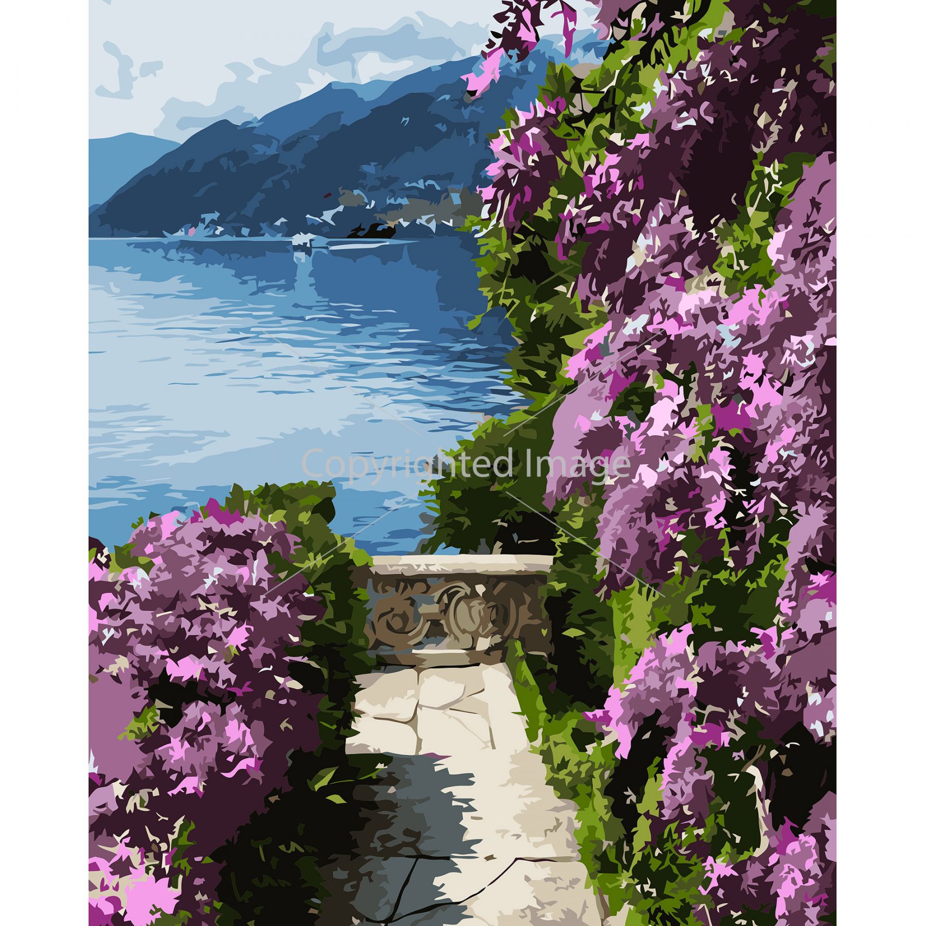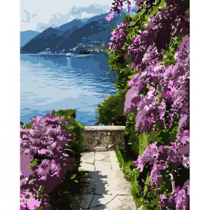 Картина за номерами Strateg ПРЕМІУМ Лазурний берег у горах з лаком розміром 40х50 см VA-3235
