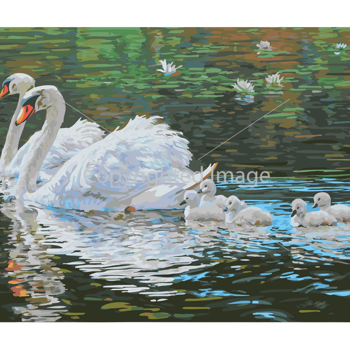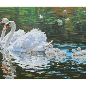 Картина за номерами Strateg ПРЕМІУМ Лебедина сім'я з лаком розміром 40х50 см (SY6630)