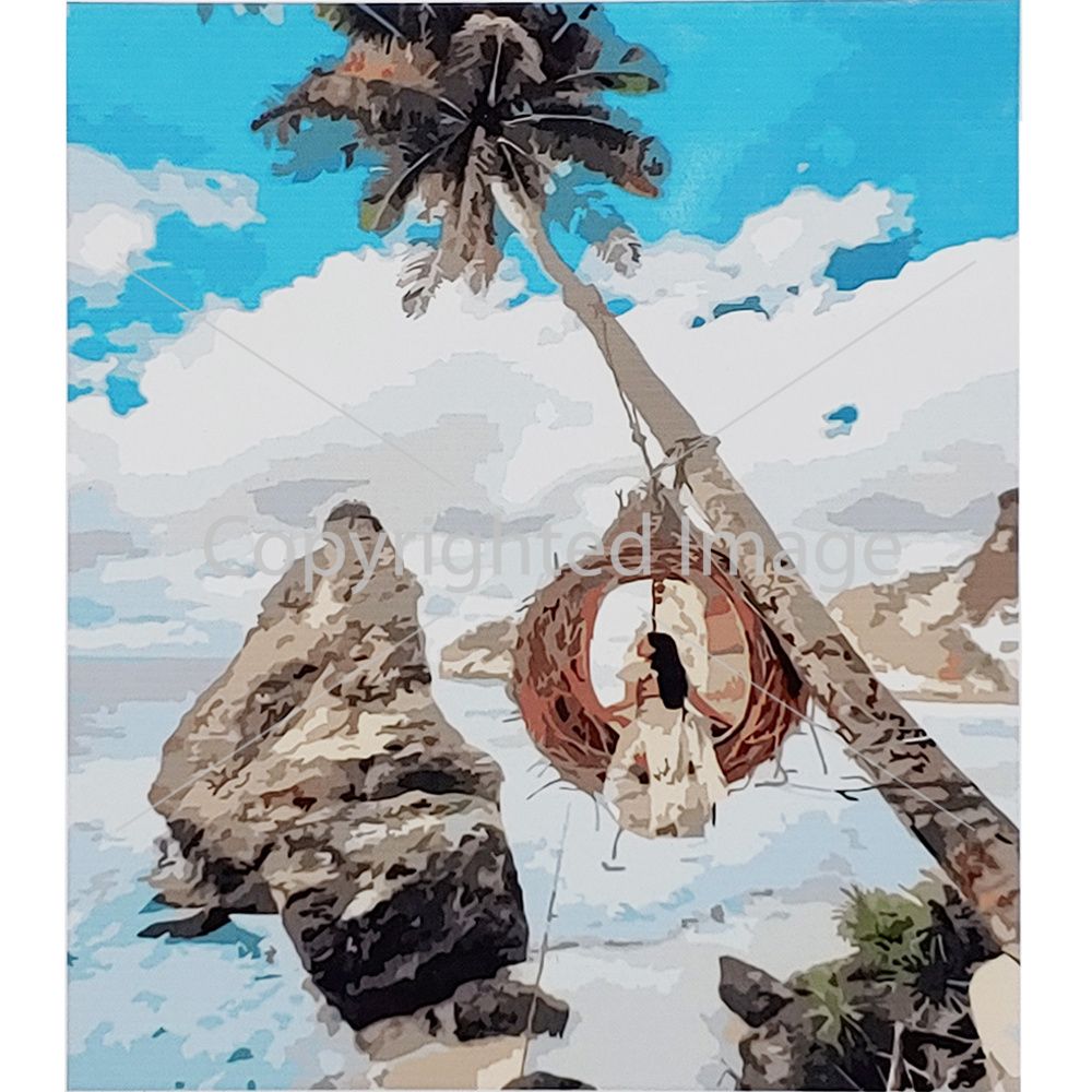 Комплектація:Контейнери з акриловими фарбами; синтетичні пензлики (3 шт.), зразок картини; полотно із розбивкою зображення за номерами; підрамник; кріплення;лак.