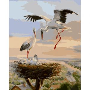 Картина за номерами Strateg ПРЕМІУМ Лелеки в гнізді розміром 40х50 см (GS1150)