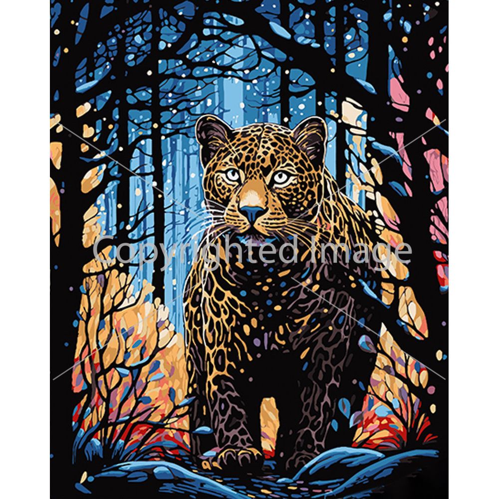 Картина за номерами Strateg ПРЕМІУМ Леопард на полюванні на чорному фоні розміром 40х50 см (AH1063)