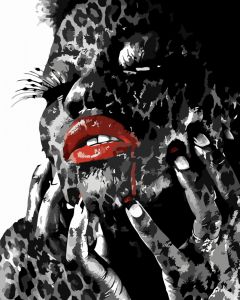 Картина за номерами Strateg ПРЕМІУМ Леопардова дівчина з лаком розміром 40х50 см VA-3425