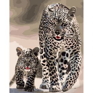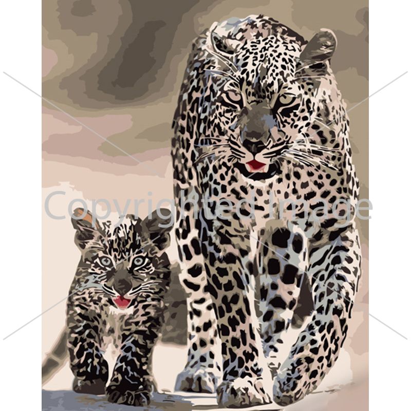 Картина за номерами Strateg ПРЕМІУМ Леопардова сім'я розміром 40х50 см (GS934)