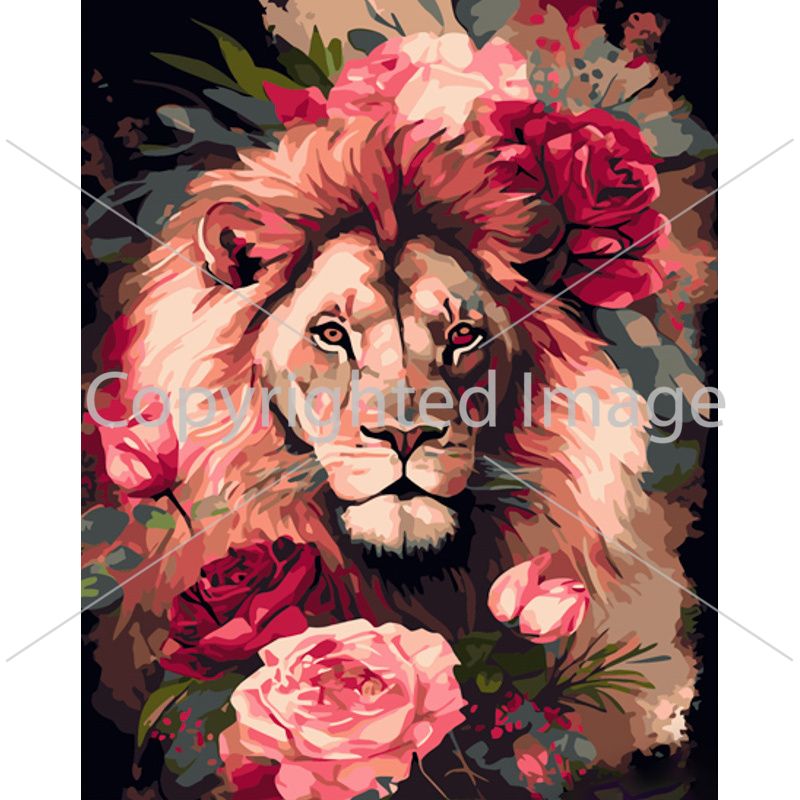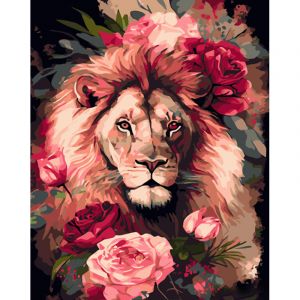 Картина за номерами Strateg ПРЕМІУМ Лев у трояндах розміром 40х50 см (GS959)