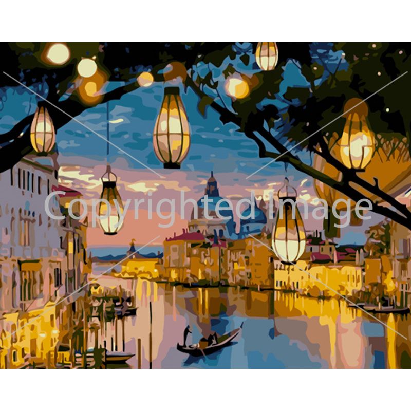 Картина за номерами Strateg ПРЕМІУМ Ліхтарики Венеції з лаком розміром 40х50 см (GS1159)