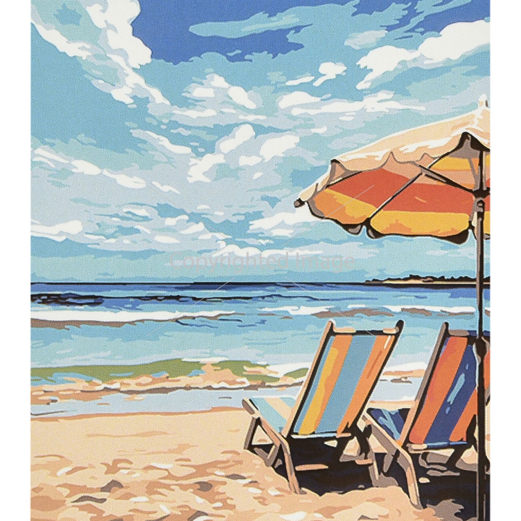 Картина за номерами Strateg ПРЕМІУМ Літній релакс біля моря з лаком та рівнем розміром 40х50 см (VA-4655)