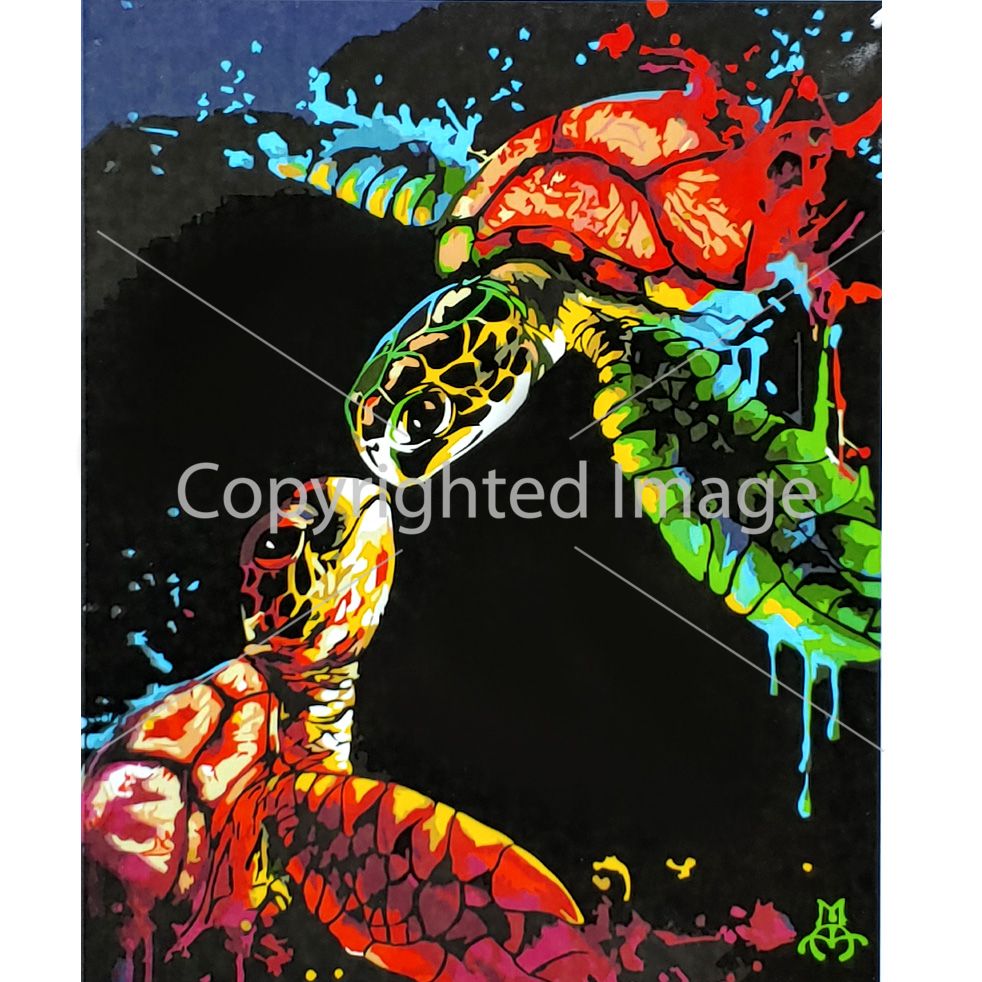Картина за номерами Strateg ПРЕМІУМ Любов кольорових черепашок з лаком розміром 40х50 см (SY6922)