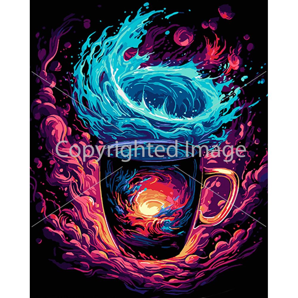 Картина за номерами Strateg ПРЕМІУМ Магічна чашка на чорному фоні розміром 40х50 см (AH1079)