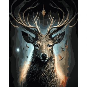 Картина за номерами Strateg ПРЕМІУМ Магічний олень з лаком та з рівнем розміром 40х50 см (GS1537)