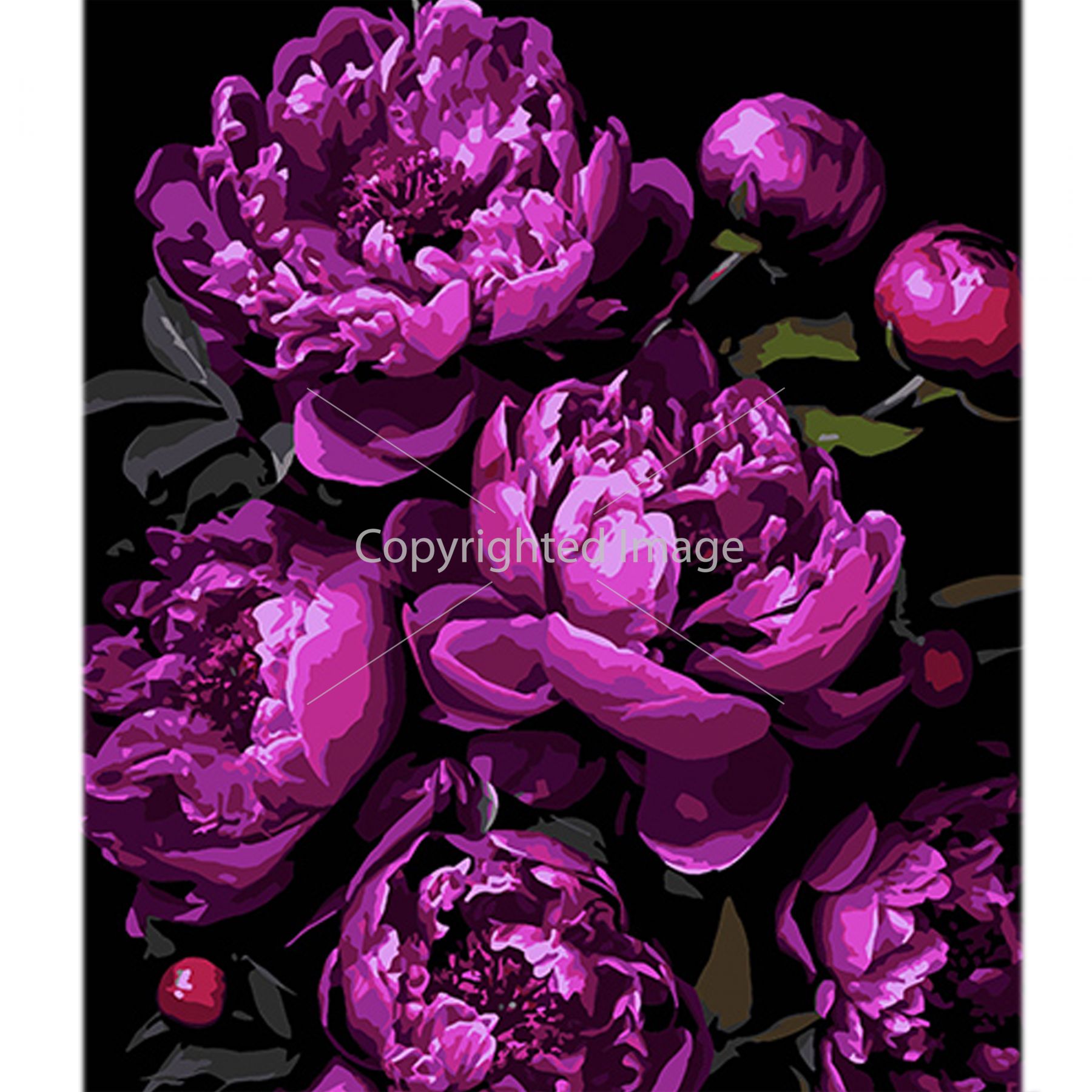 Картина за номерами Strateg ПРЕМІУМ Магія фіолетових піонів на чорному фоні розміром 40х50 см (AH1134)