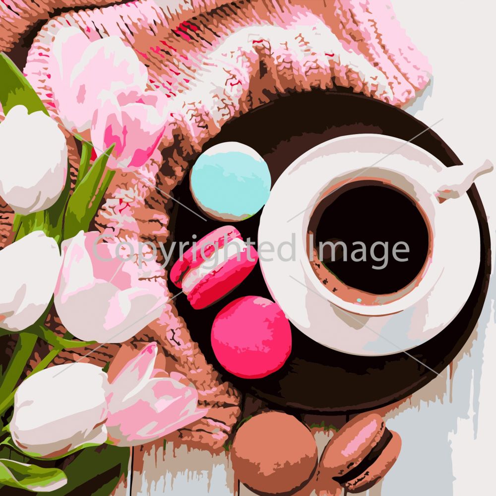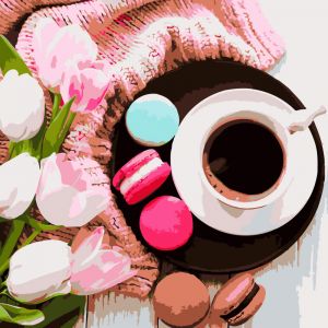 Картина за номерами Strateg ПРЕМІУМ Макаруни з кавою розміром 40х40 см (SK017)