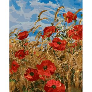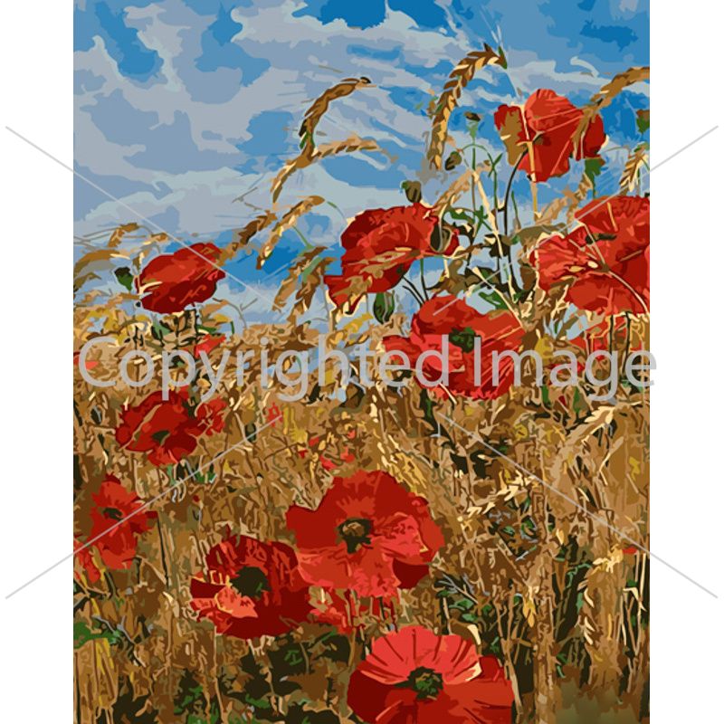 Картина за номерами Strateg ПРЕМІУМ Маки на пшеничному полі з лаком та з рівнем розміром 40х50 см (GS1439)
