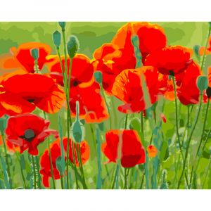Картина за номерами Strateg ПРЕМІУМ Маки в полі з лаком розміром 40х50 см (GS1179)
