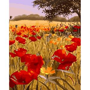Картина за номерами Strateg ПРЕМІУМ Макове поле з лаком та з рівнем розміром 40х50 см (GS1341)
