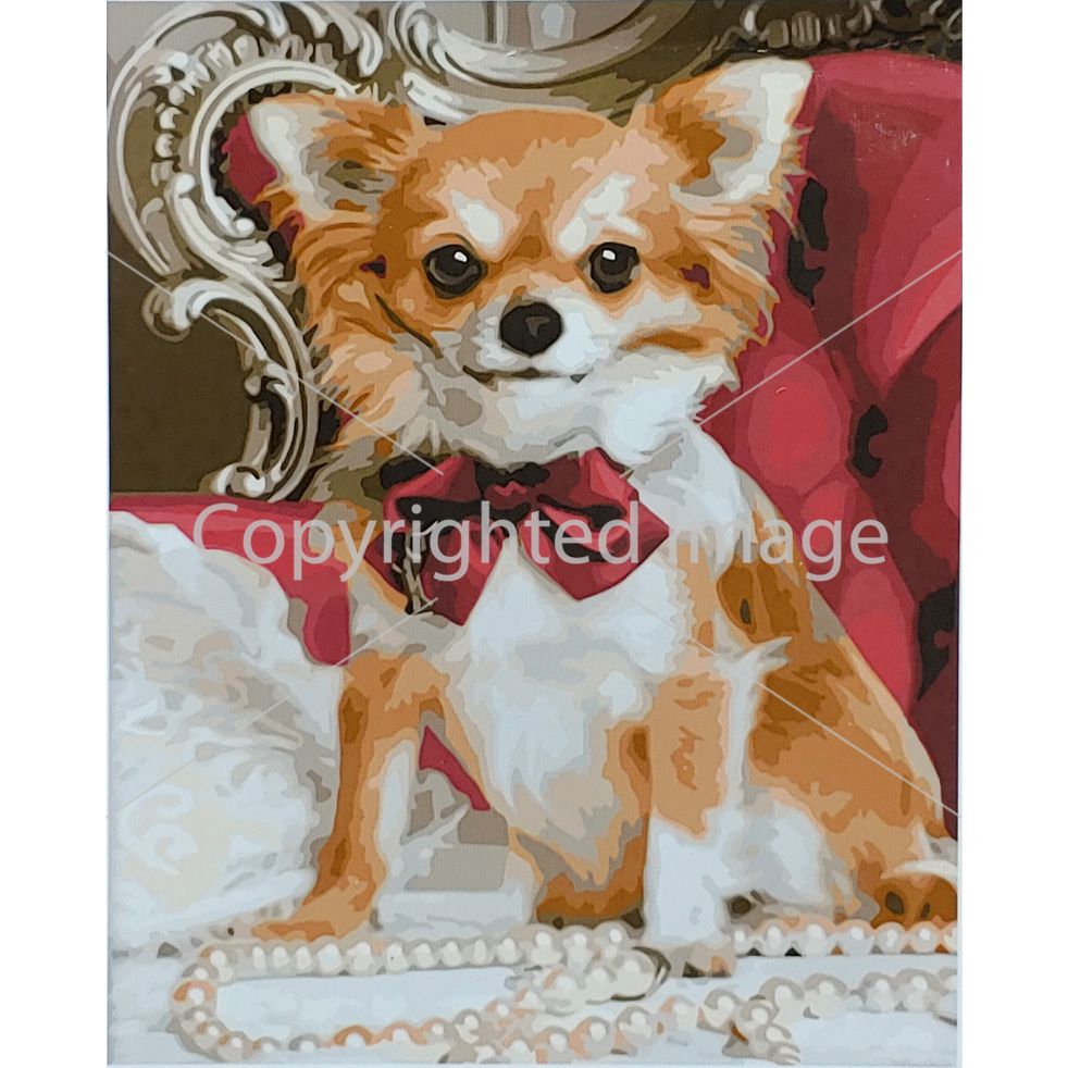 Картина за номерами Strateg ПРЕМІУМ Маленька Чихуахуа з лаком розміром 40х50 см (SY6679)