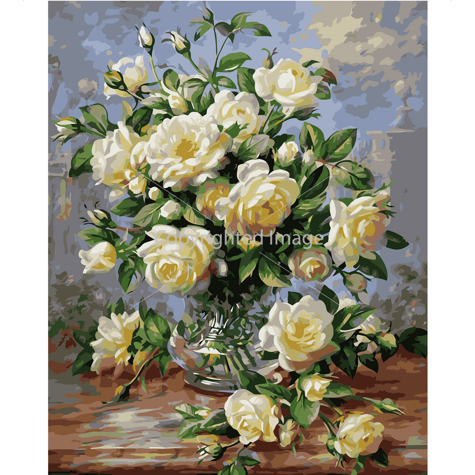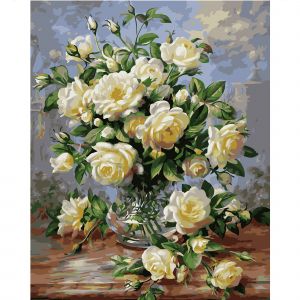 Картина за номерами Strateg ПРЕМІУМ Маленькі білі троянди з лаком розміром 40х50 см VA-0577