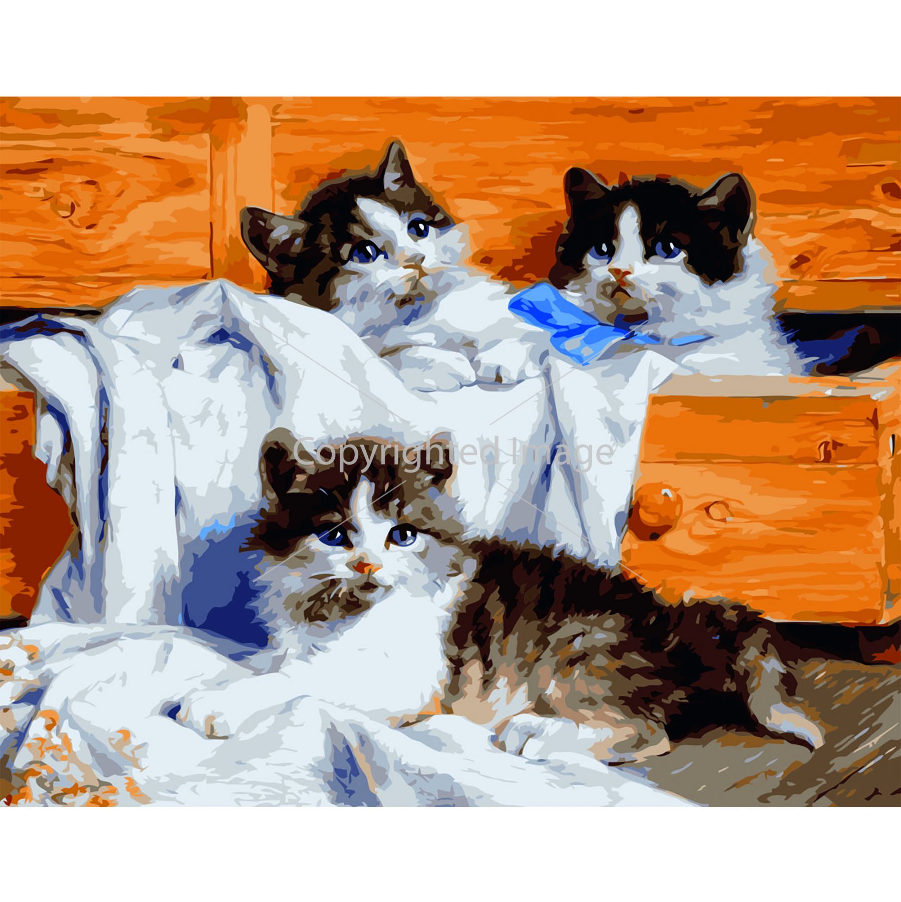 Картина за номерами Strateg ПРЕМІУМ Маленькі кошенята з лаком розміром 40х50 см VA-2647