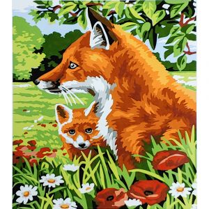 Картина за номерами Strateg ПРЕМІУМ Мама лисичка з дитинчам з лаком розміром 30х40 см (SS6647)