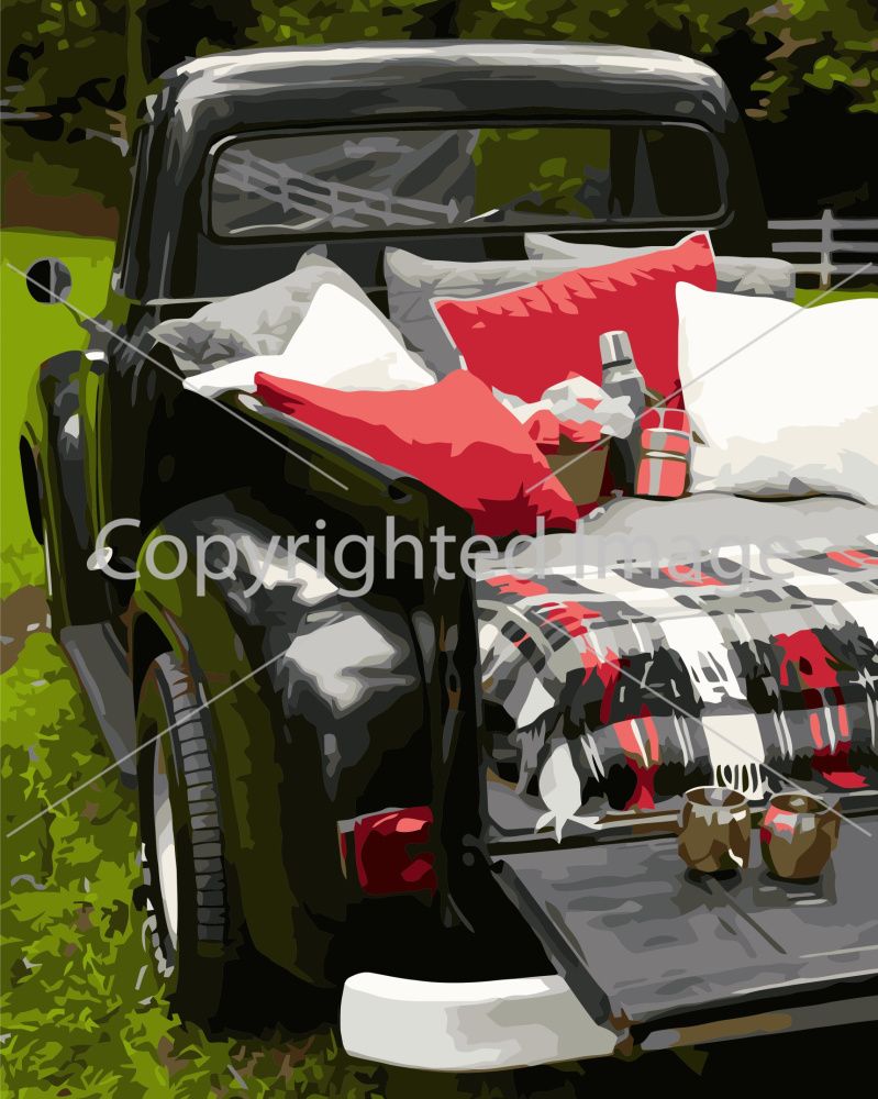 Картина за номерами Strateg ПРЕМІУМ Машина для побачень з лаком розміром 40х50 см VA-3437