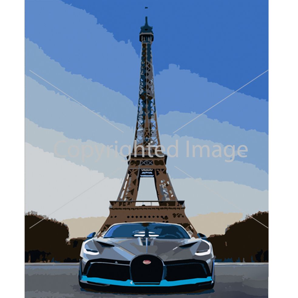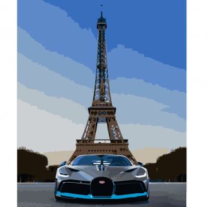 Картина за номерами Strateg ПРЕМІУМ Машина на фоні Ейфелевої вежі розміром 40х50 см (HH042)