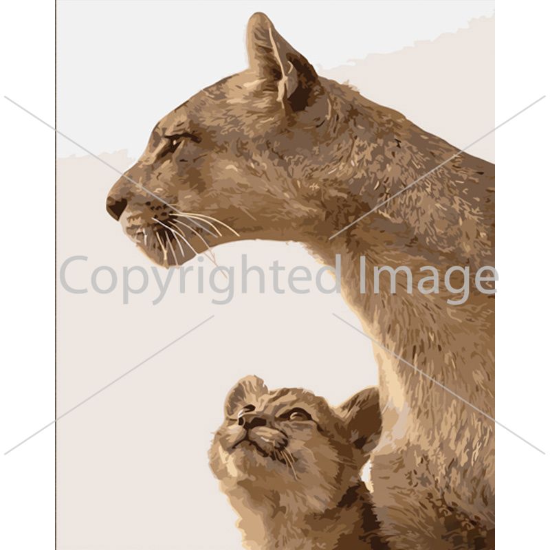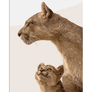Картина за номерами Strateg ПРЕМІУМ Мати левиця з дитинчам з лаком розміром 40х50 см (DY402)