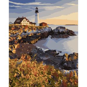 Картина за номерами Strateg ПРЕМІУМ Маяк з лаком розміром 40х50 см (SY6735)