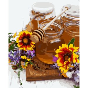 Картина за номерами Strateg ПРЕМІУМ Мед та квіти з лаком розміром 40х50 см VA-3622