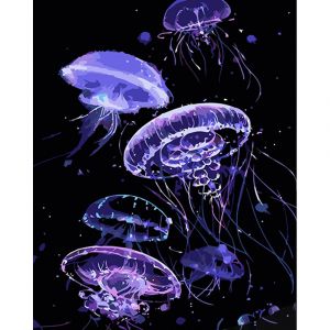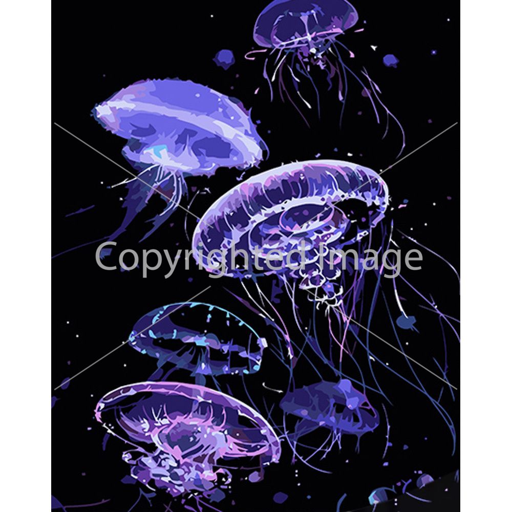 Картина за номерами Strateg ПРЕМІУМ Медузи на чорному фоні розміром 40х50 см (AH1018)