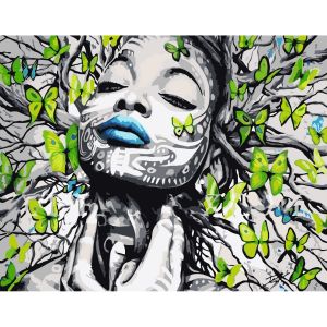 Картина за номерами Strateg ПРЕМІУМ Метелики біля обличчя з лаком та з рівнем розміром 40х50 см (SS6479)