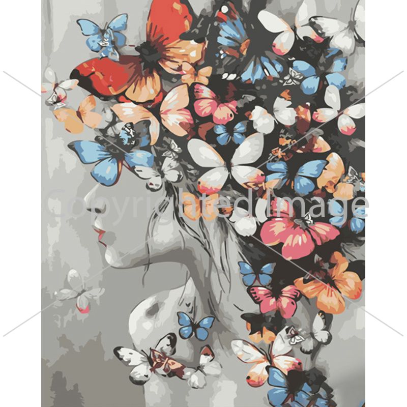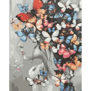 Картина за номерами Strateg ПРЕМІУМ Метелики у волоссі розміром 40х50 см (GS1057)