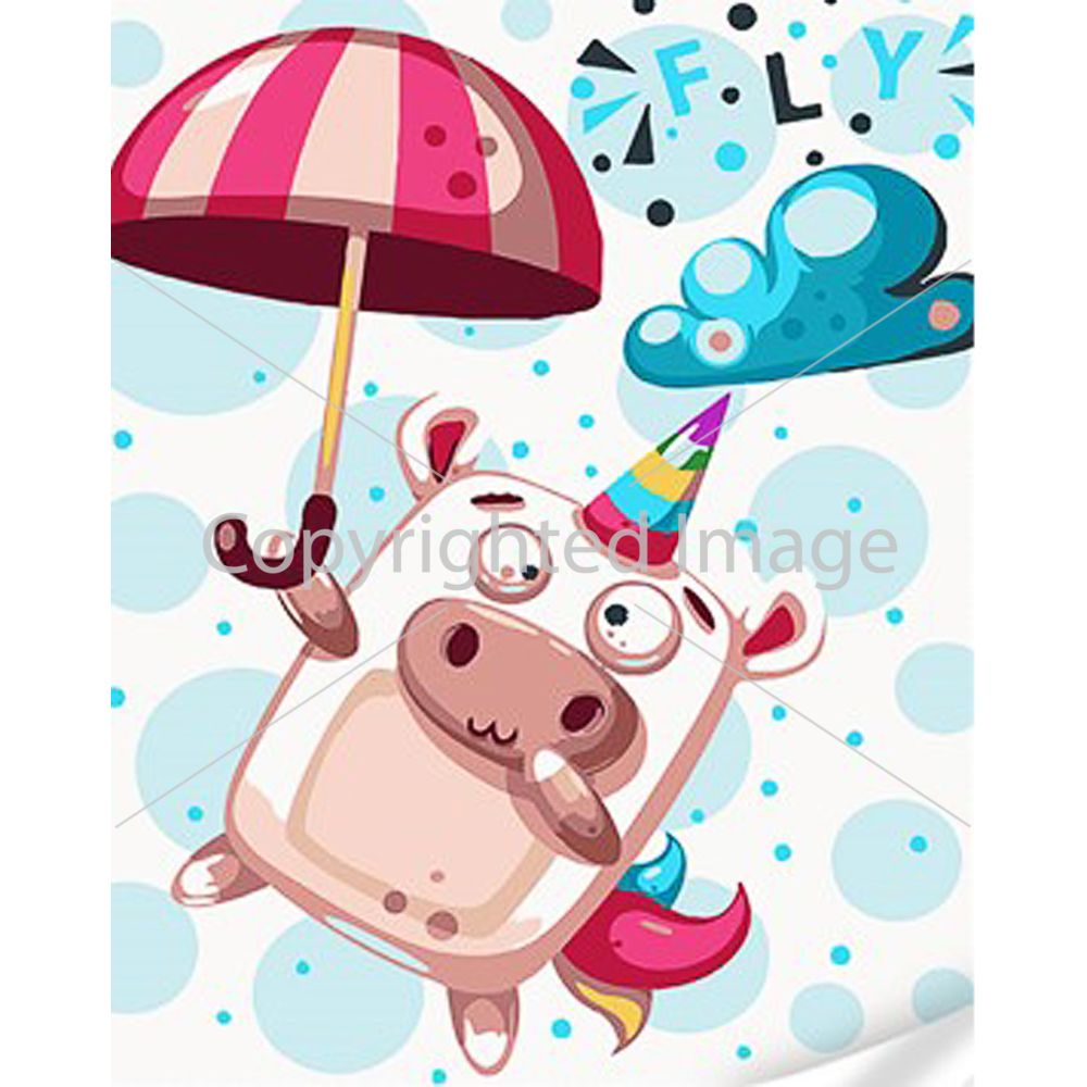 Картина за номерами Strateg ПРЕМІУМ Мила ілюстрація корови і парасольки з лаком та з рівнем розміром 30х40 см (SS1070)